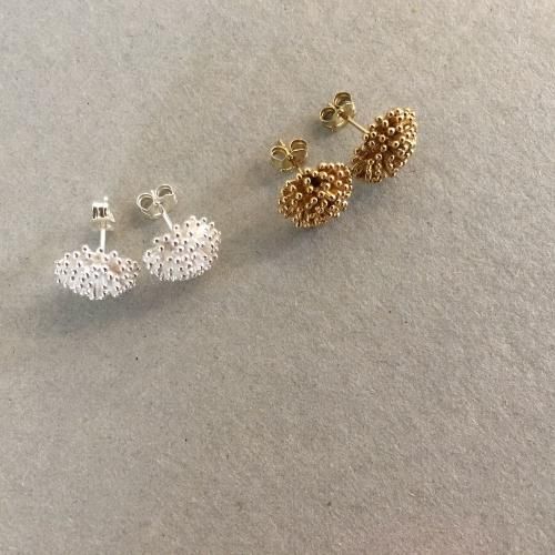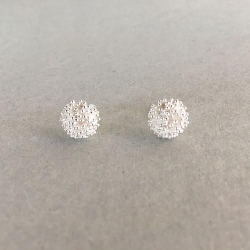 ちいさな粒を集めて形つくった花のもチーフが素敵なピアスです。