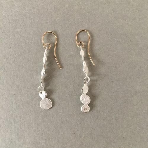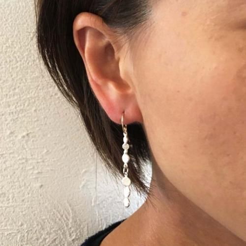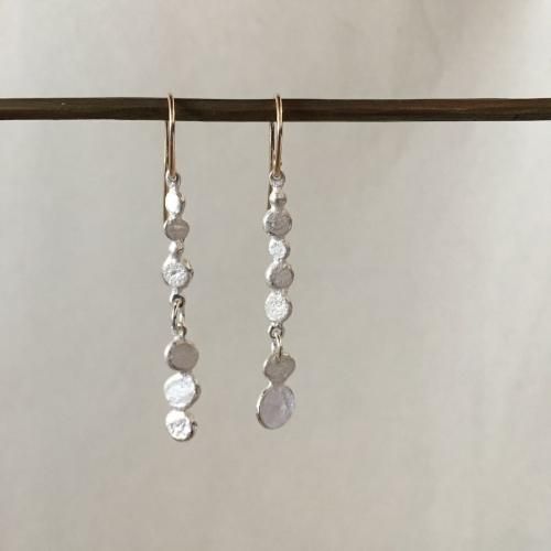 小さな丸が零れ落ちるように連なった、きおくと言う名前のピアスです。