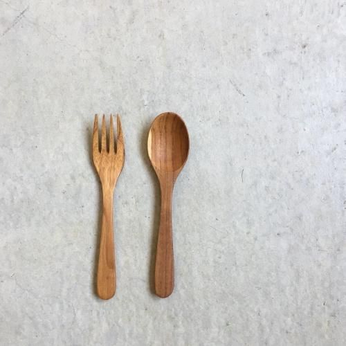 手作業によって仕上げられた、あたたかみのある天然木のカトラリー。