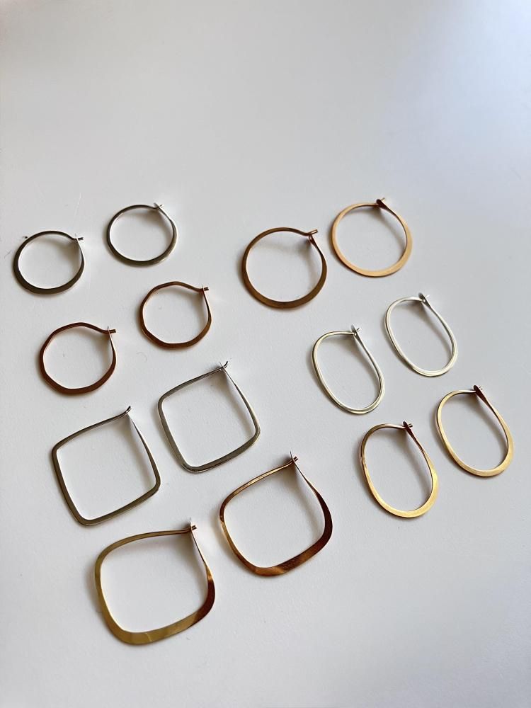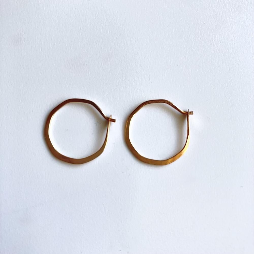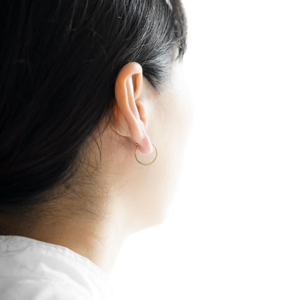 直径1mmほどの棒状のゴールドやシルバーをハンマーで叩いたり、ローラーで伸ばしたり、バークレイにあるメリッサの工房で行われていることは、数千年前と変わらない原始的な手仕事です。だからこそ、シンプルなカタチに仕上がったモノたちには普遍的な美しさを感じるのだと思います。またワイヤーのみで作られたピアスは余計なパーツがなく、とても軽く、デイリーにお使いいただくピアスとしては最適です。きっと末永く愛用していただけるモノになることでしょう。10年以上作り続けられているメリッサの定番的なアイテムです。