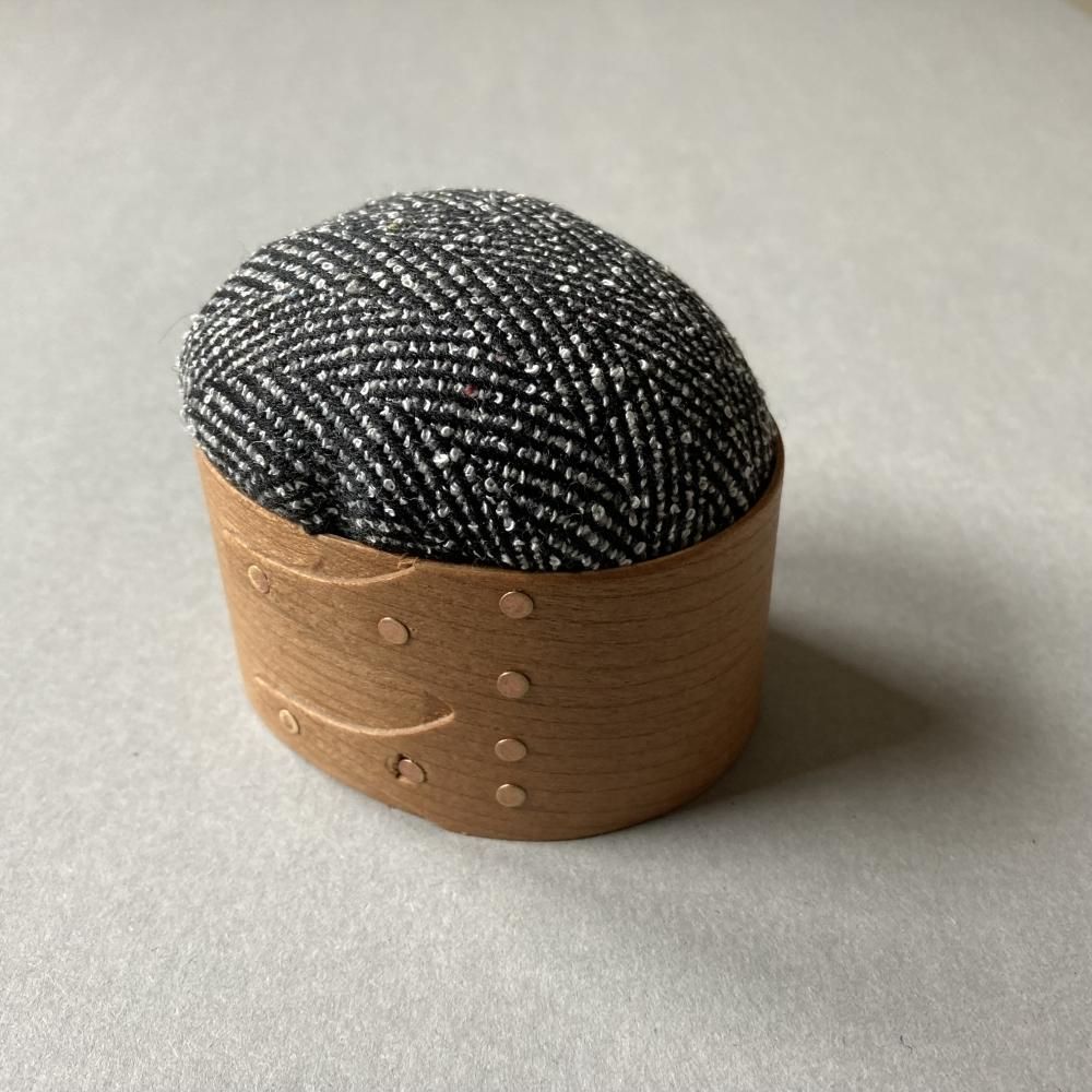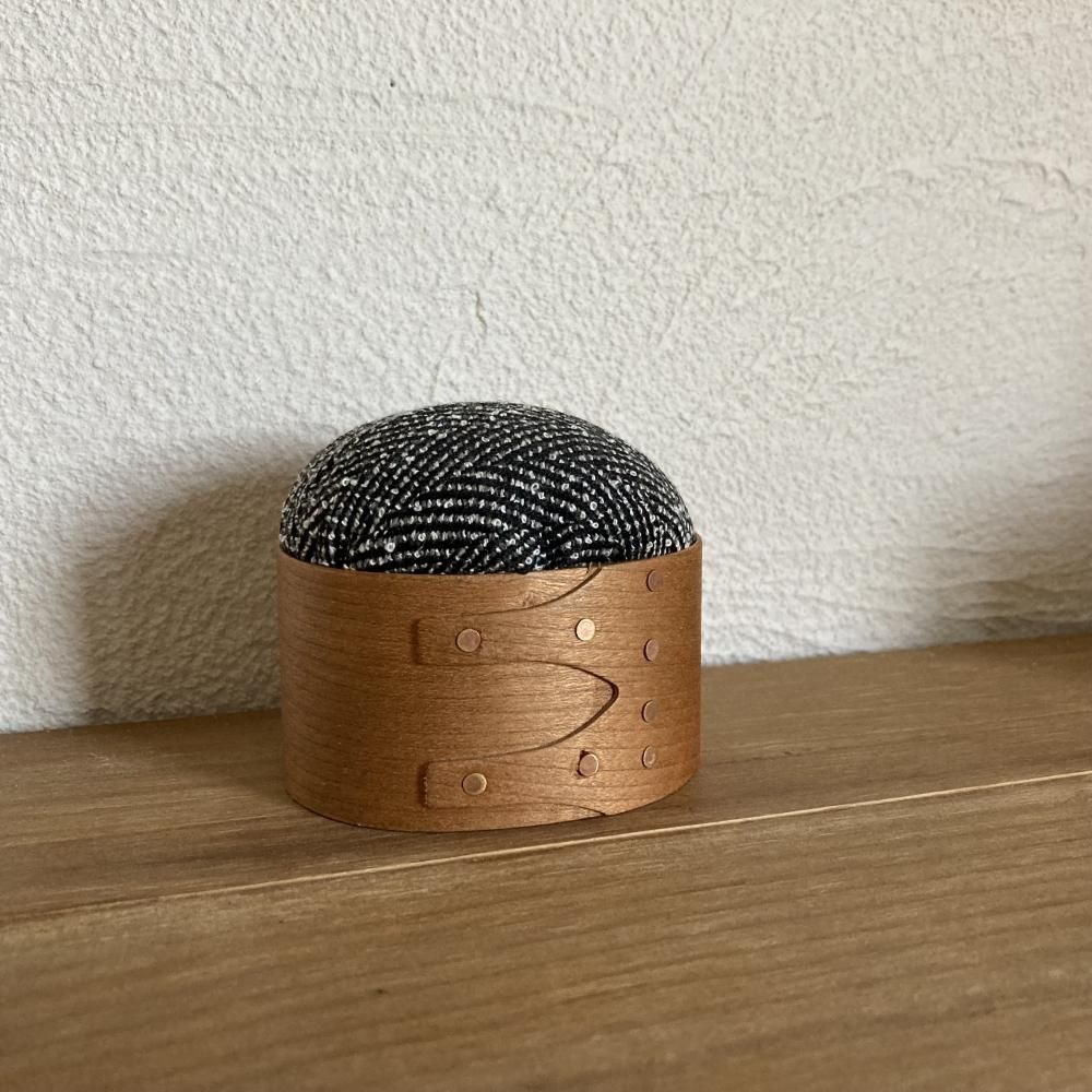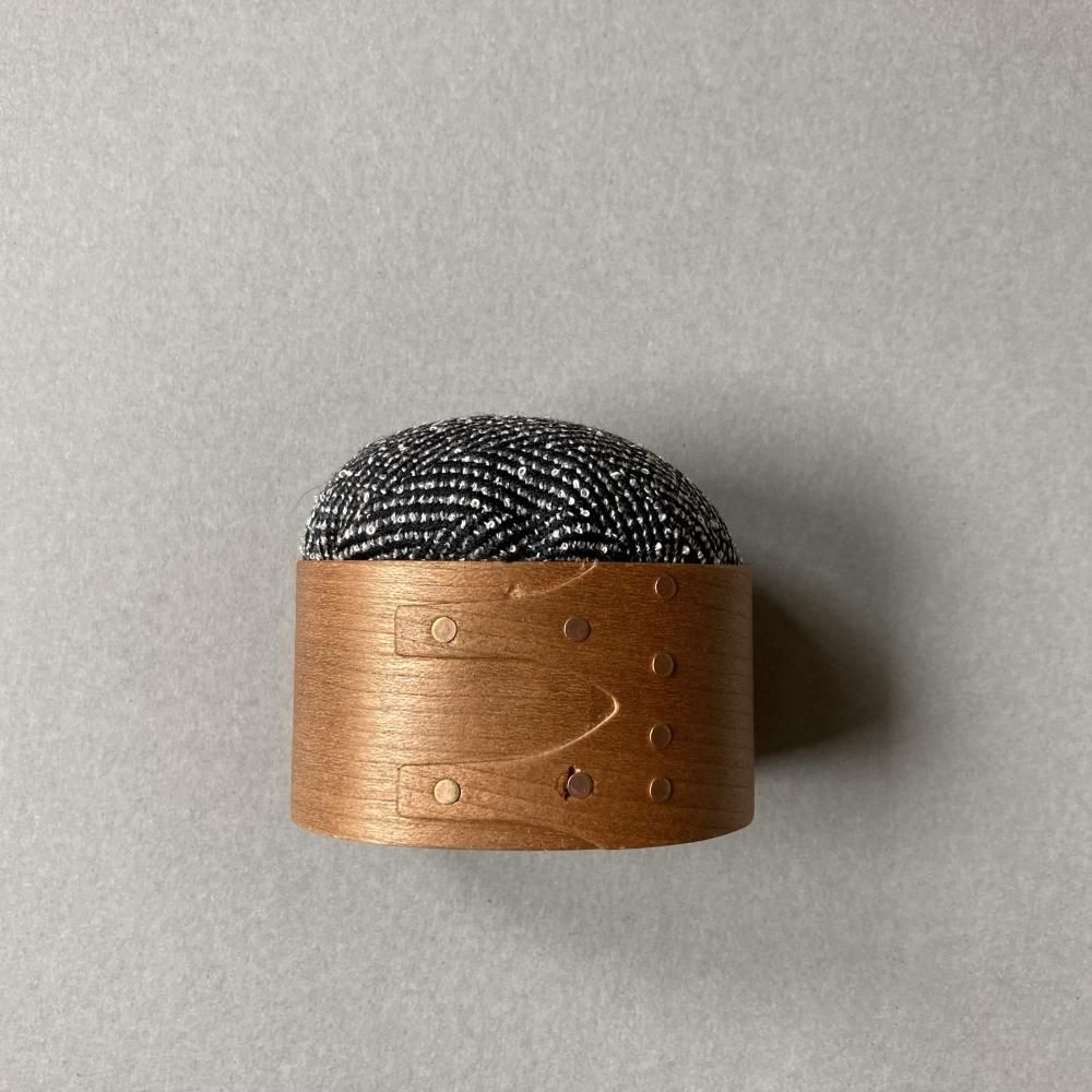シェーカーの木の暖かさと素材となっているチェリー材の色に合わせてセレクトされたファブリックのピンクッションは、日常の作業をちょっだけ楽しい時間にしてくれそうです。
