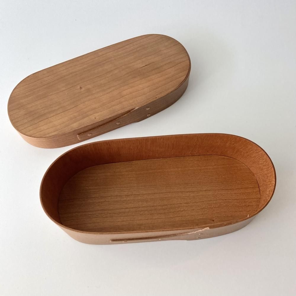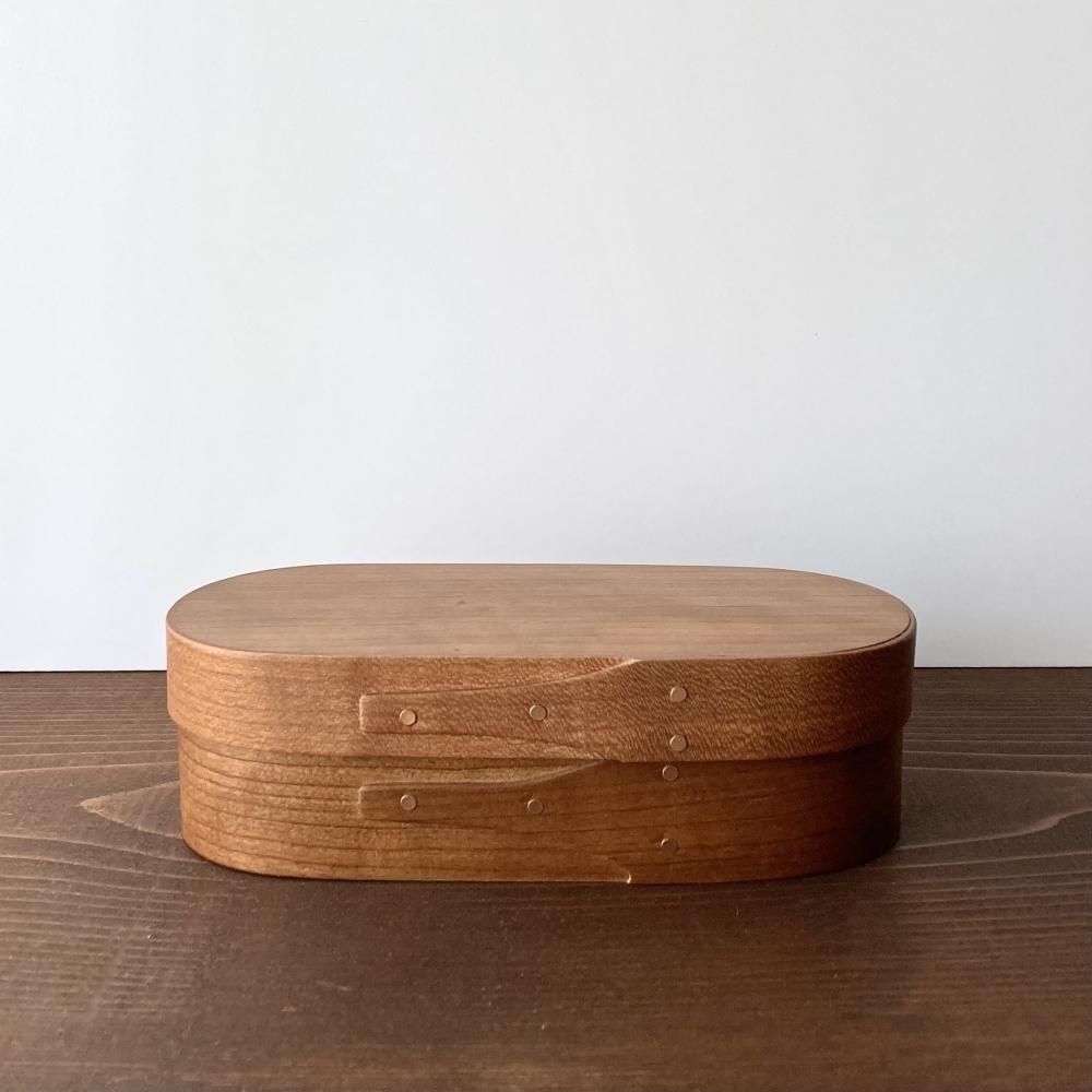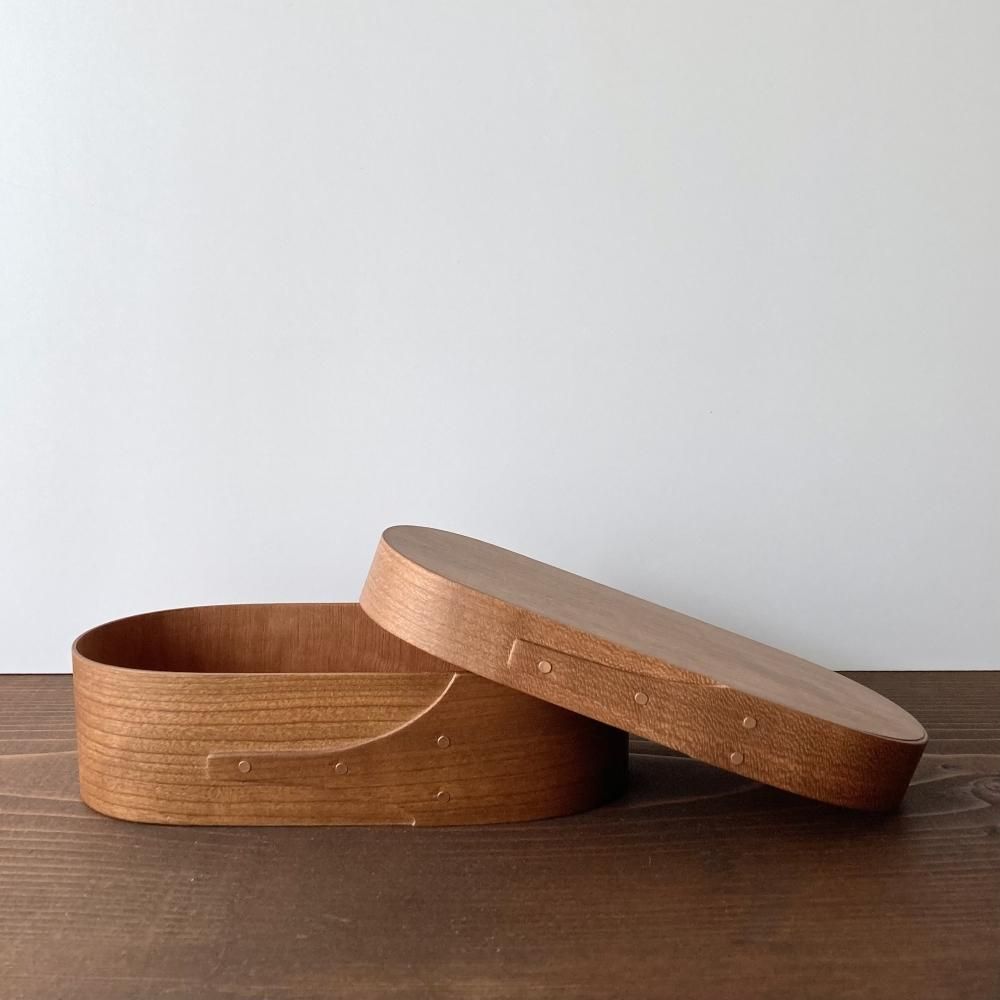 シェーカーボックスは薄い木材を曲げて作られる、シンプルな楕円型の木箱です。19世紀アメリカで自給自足の生活をした”シェーカー教徒”たちが道具として使った事で広く知られるようになりました。アクシスのシェーカーシリーズは、オリジナルシェーカーボックスのシンプルな美しさはそのままに、現代の日本の生活でも使いやすいサイズや機能性にこだわって作られています。