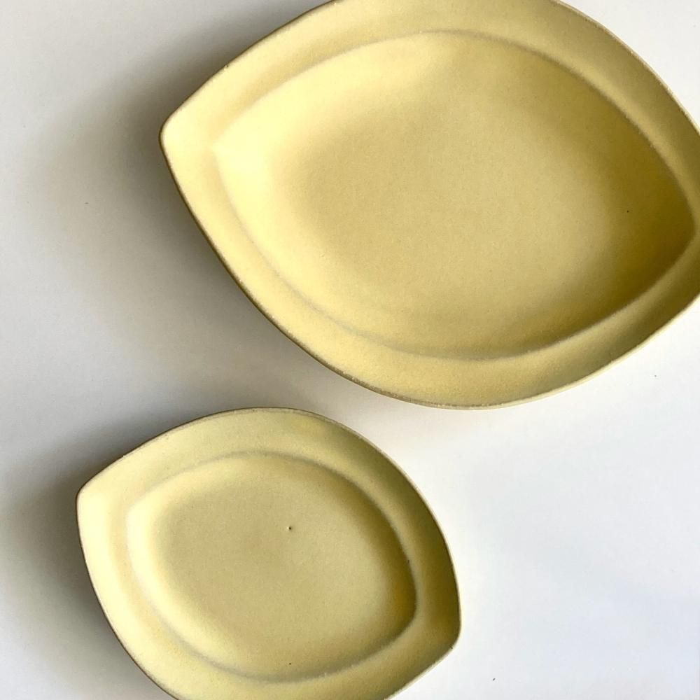 レモンの形の長皿です。サイドメニューやデザートの盛り付けに。