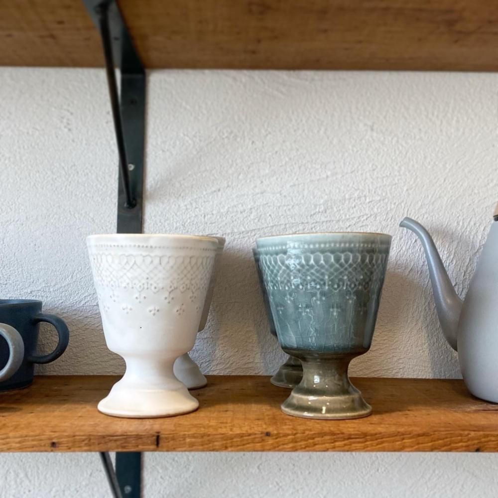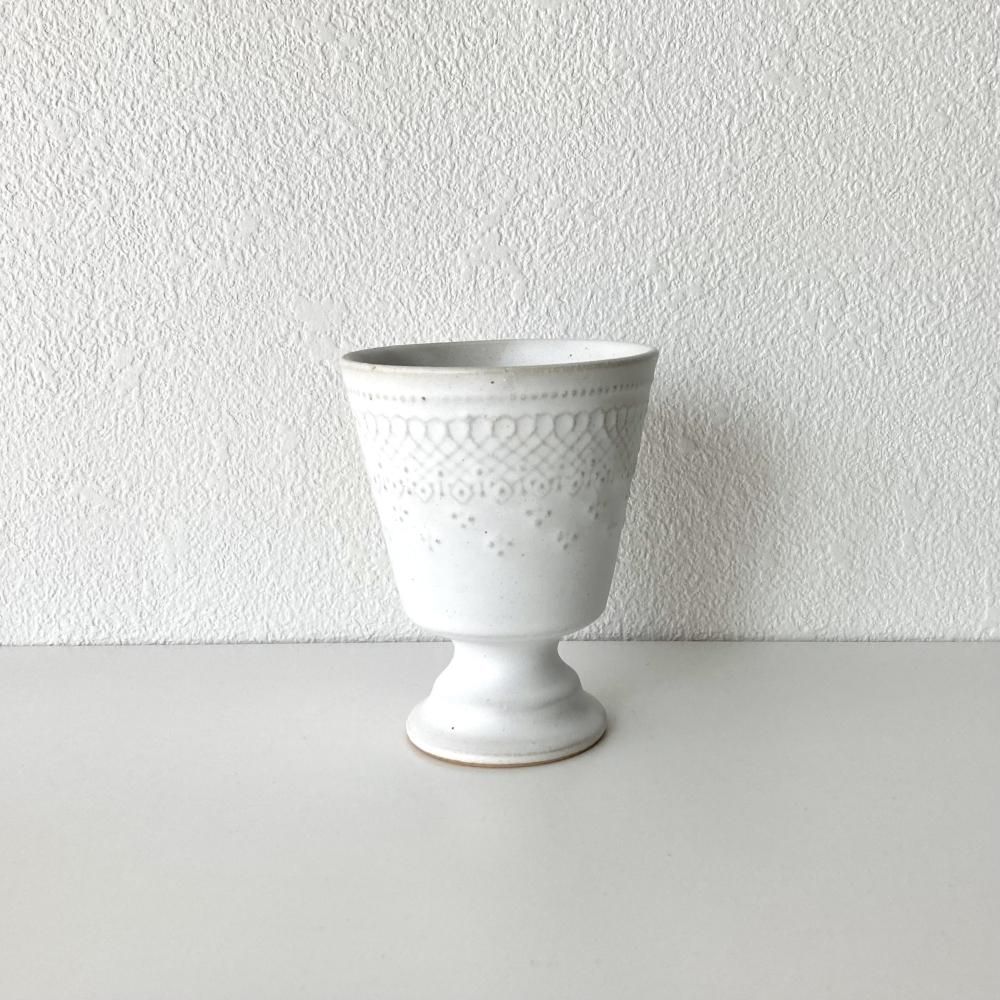 【わかさま陶芸】益子焼 /フレンチレースゴブレット(マットホワイト)