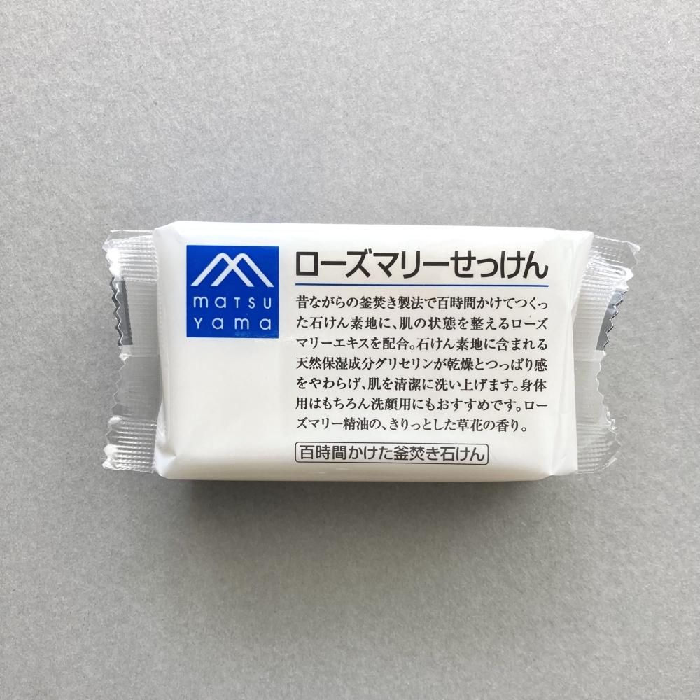 全成分/石ケン素地[洗浄]、ローズマリー葉油[賦香]、ローズマリー葉エキス[肌を整える]、水[溶媒]、エタノール[溶媒]、トコフェロール[品質安定]