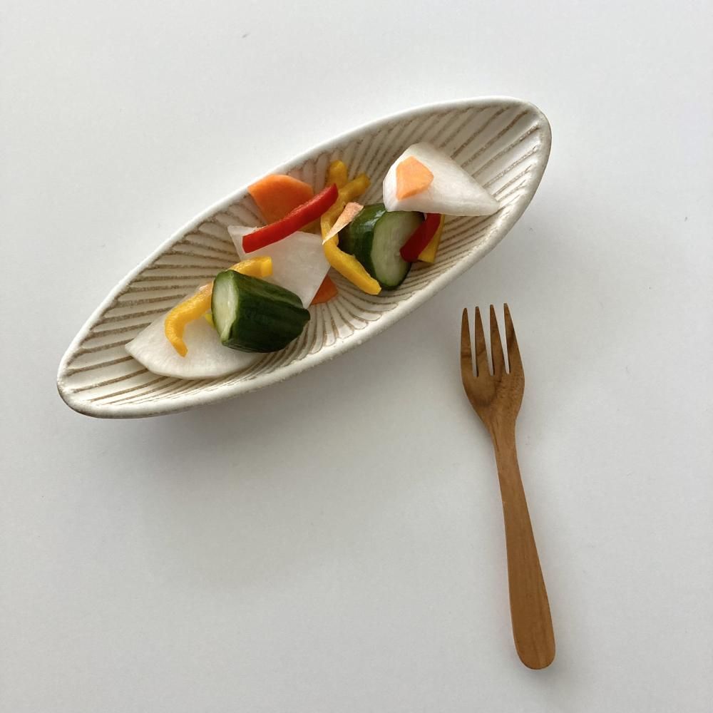 サイドメニューの盛り付けにぴったりな細長いプレートです。