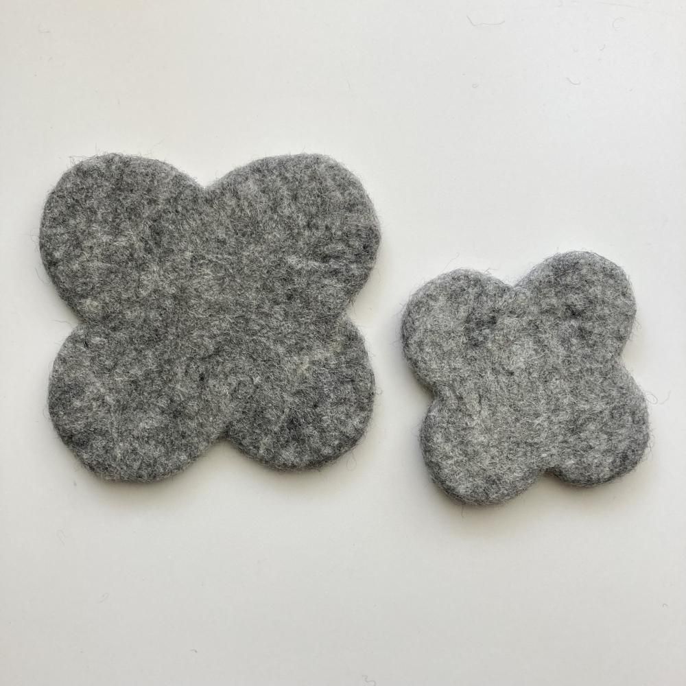 厚みがあり、しっかりとした作りのシンプルな花形のフェルトコースター。揃いのポットマットと合わせても素敵です。