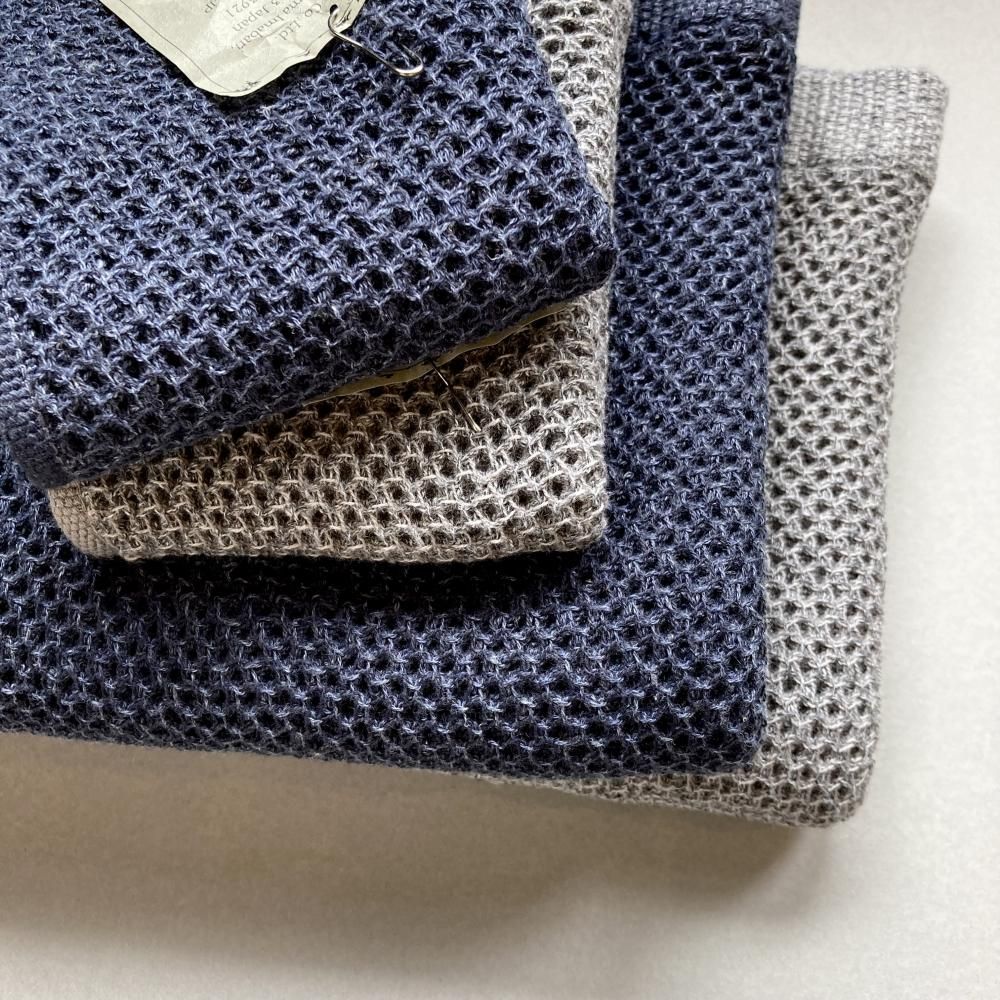 コットンとリネンを組み合わせたオリジナルの糸を使用したワッフルタオル。
