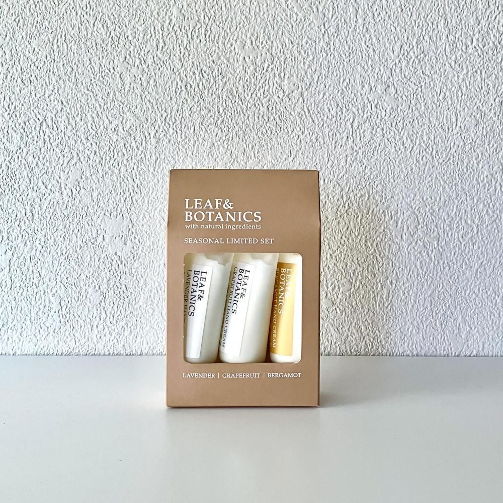 【松山油脂】*秋冬限定*LEAF&BOTANICSミニハンドクリーム3本セット