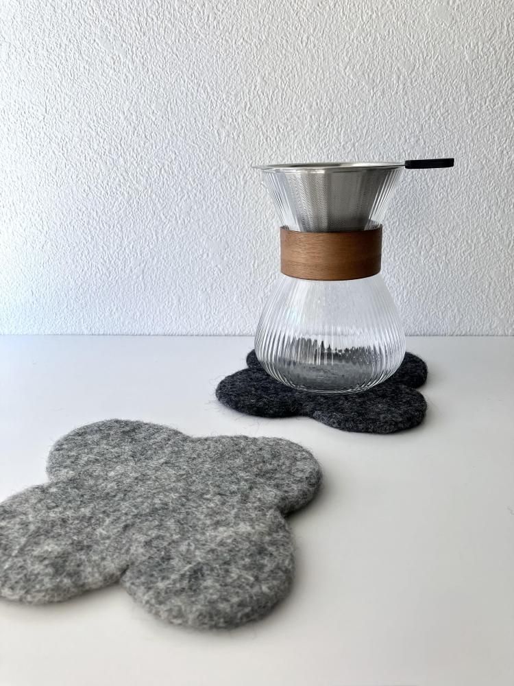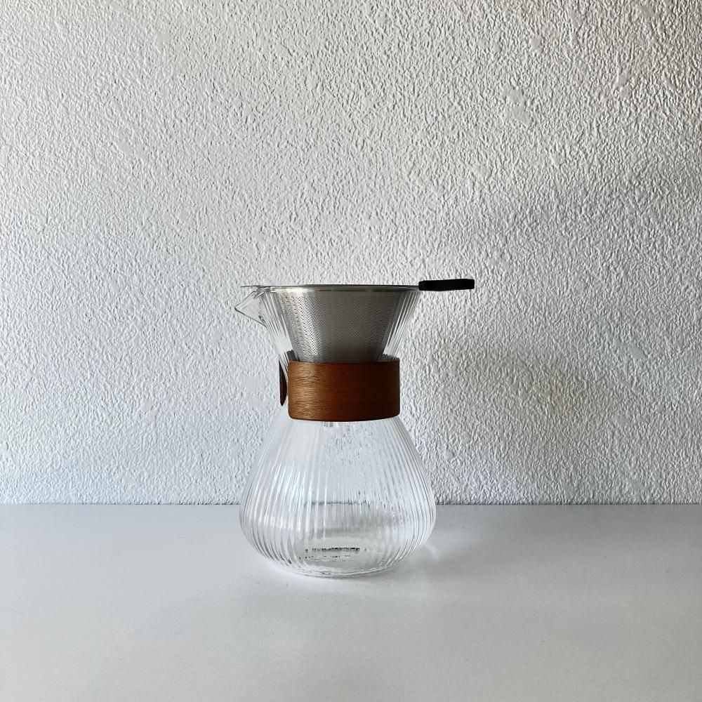 温かみのあるウォールナットとガラスの組み合わせが素敵なステンレスドリッパー付きのコーヒーカラフェ。