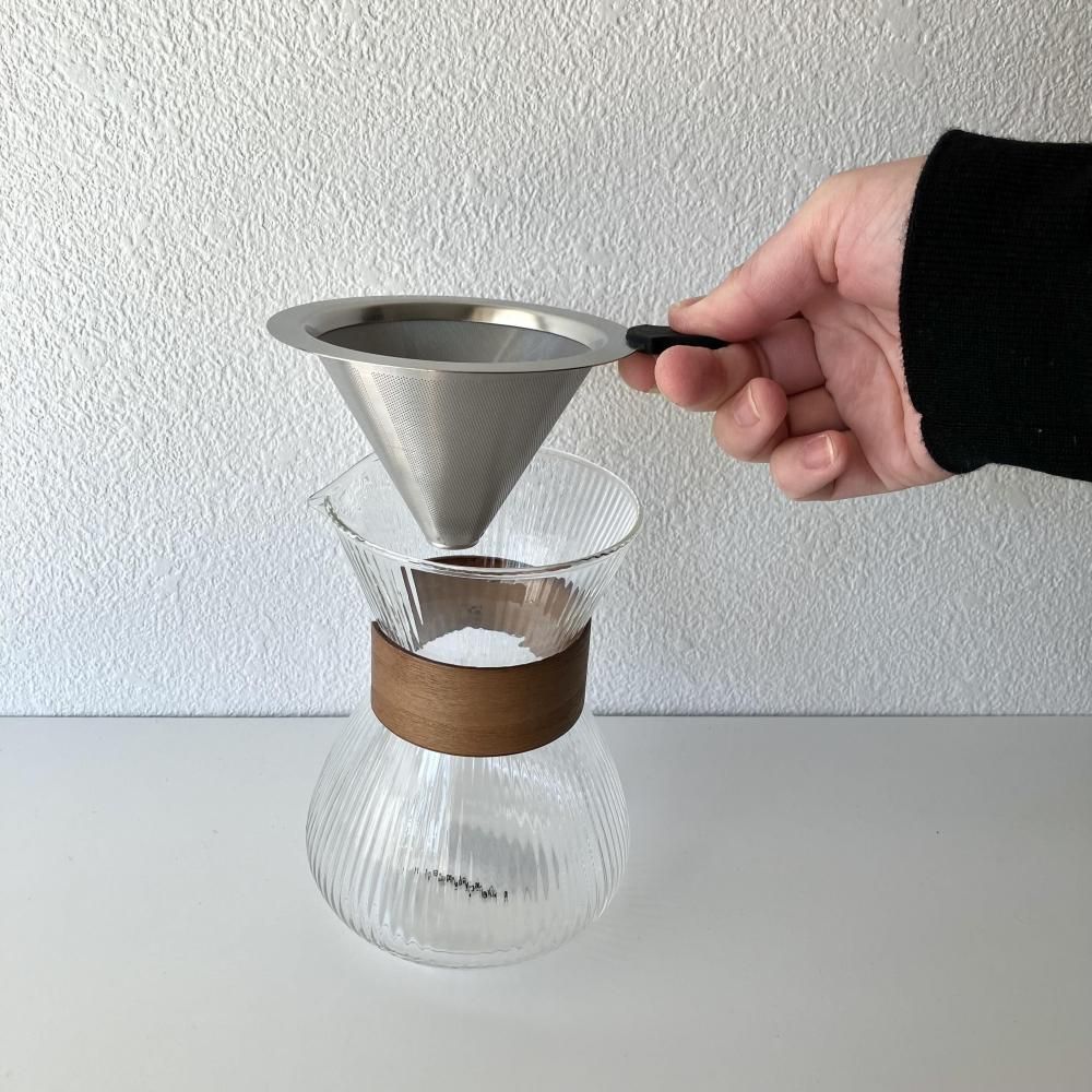 ペーパーフィルターが不要なステンレスのドリッパーがセットになっています。
